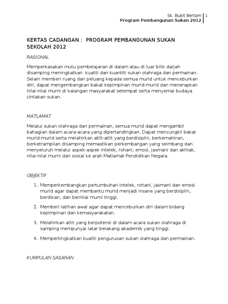 Kertas Cadangan Prog Pembangunan Sukan Pdf