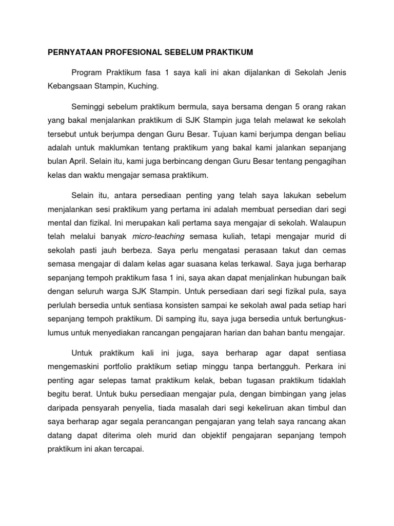 Pernyataan Profesional Selepas Praktikum Pdf
